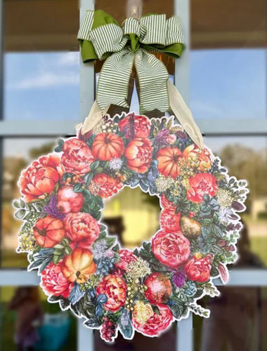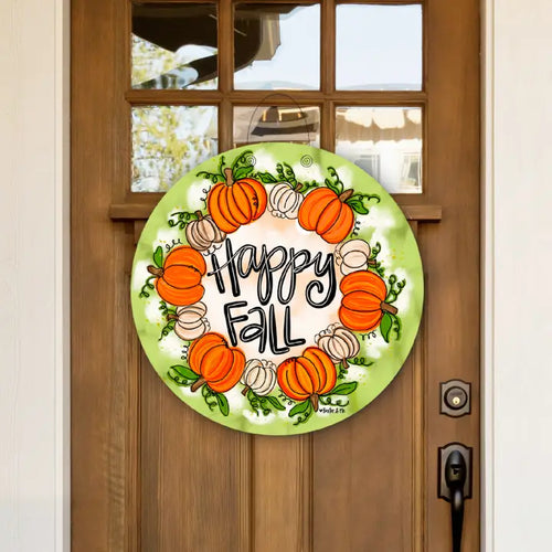 Cream Polka Dot Pumpkin With White Flowers Door Hanger