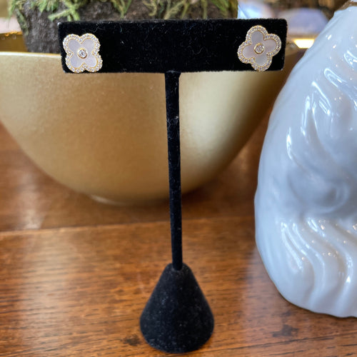 Gold CZ MOP Flower Stud
