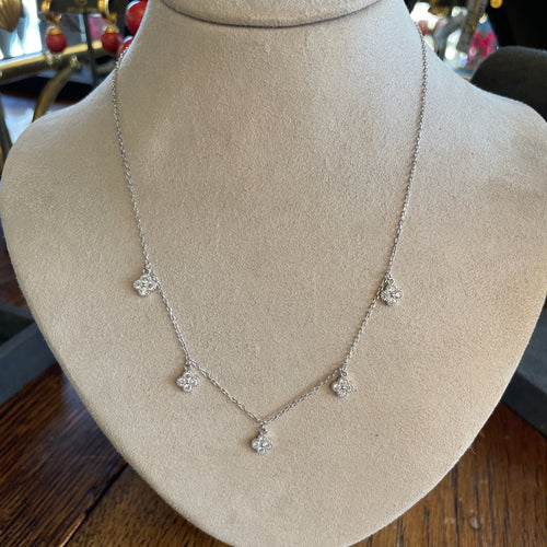 Sterling Silver 5 CZ Clover Charm Necklace