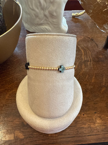 7" 3mm GF Beaded Bracelet With Black Mother Of Pearl Cross Stations