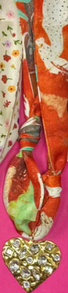 Fall Scarf Necklace with Rhinestone Heart Charm