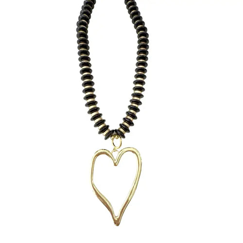 Richie Black Beaded Necklace with Jumbo Heart Charm