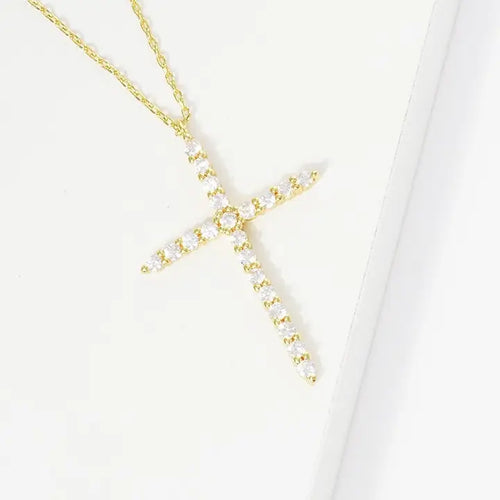 Gold Plated Round Cut Cubic Cross Necklace