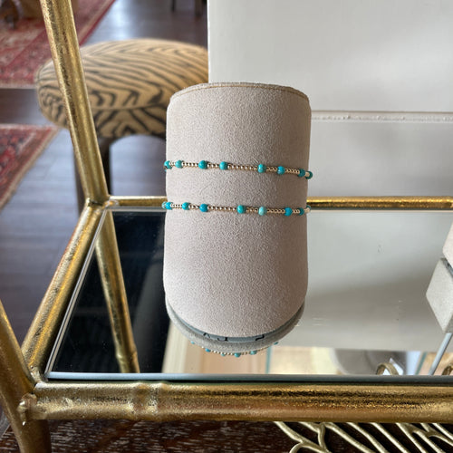 7" 2mm GF Bead with 3mm Turquoise Bead Bracelet