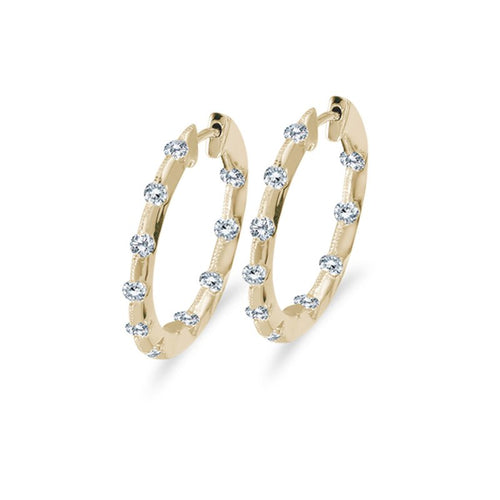 14k Yellow Gold .50 Ct Diamond Inside Outside Hoop Earrings