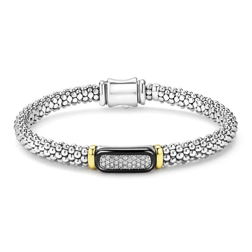 Two-Tone Black Ceramic Station Diamond Bracelet | 6mm