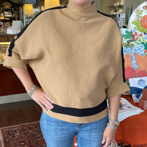 Floral Colorblock Stripe Knot Bubble Sleeve Blouse