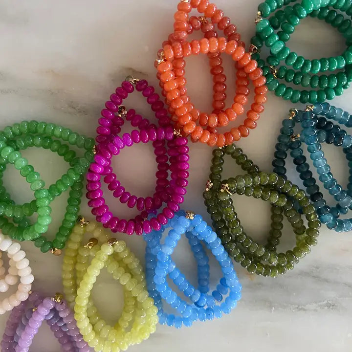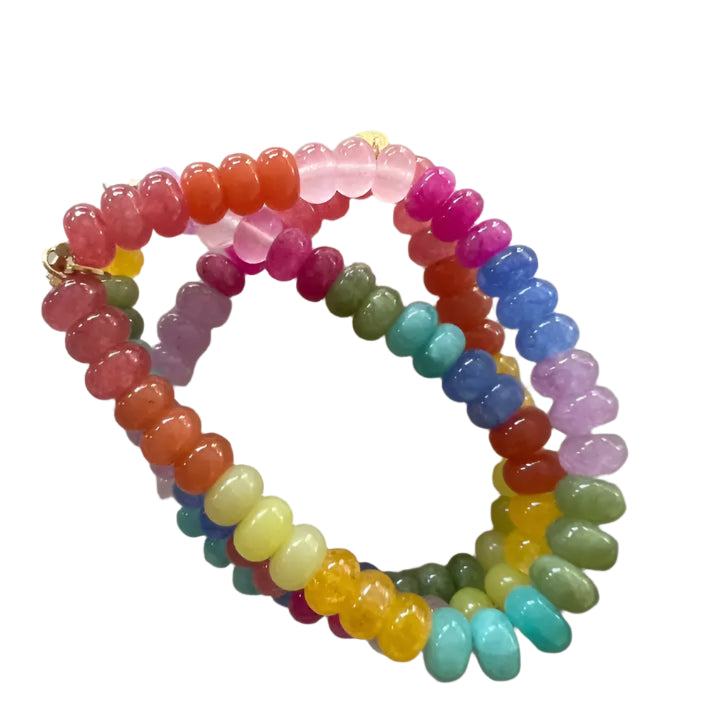 Gorgeous bright mixed gemstones on elastic. Adorable and fun!