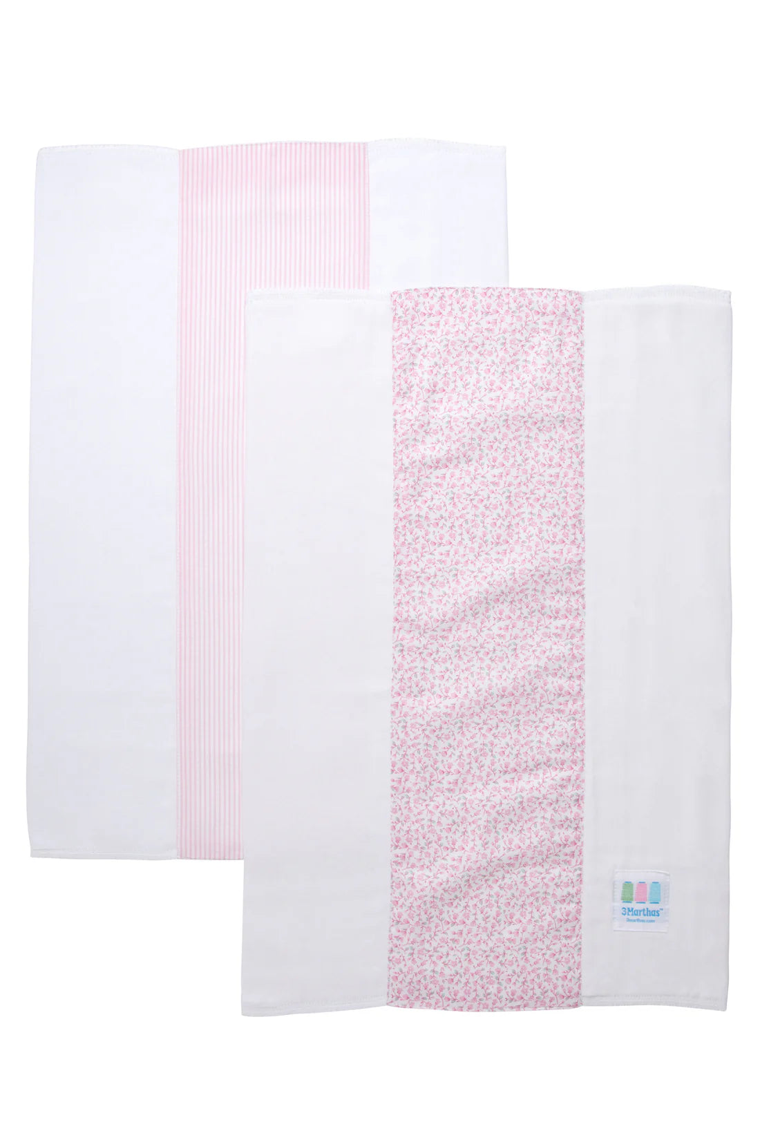 The burp cloths are one of our most practical products! Made from super absorbent, traditional cloth diapers, these burp cloths feature fancy rick rack, ribbon or pom pom trim along fabric panels and come tied with grosgrain ribbon. The burps are an easy and useful gift to bring to new parents at the hospital, with a meal or on their own!