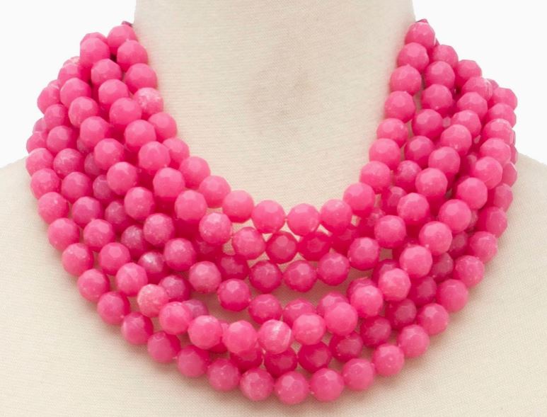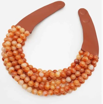 CHUNKY BEADED LAYERED NECKLACE Faux leather neck magnetic hold APPROXIMATELY 18Inch