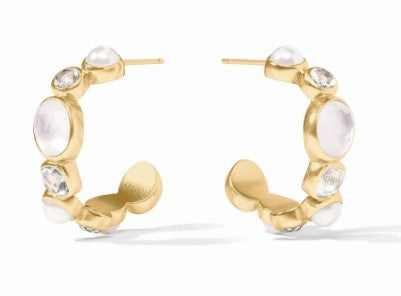 Like a meandering secret garden path, these hoops' flawlessly sparkling gold-set gemstones in varying sizes, shapes, and tones dance together in the sunlight.