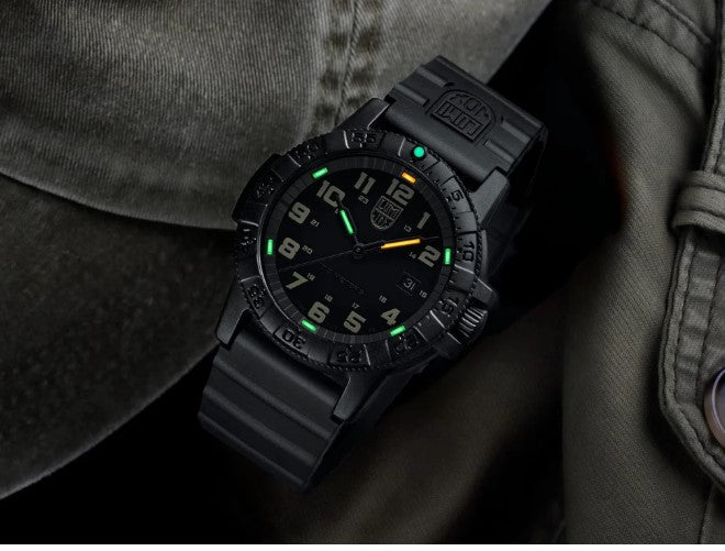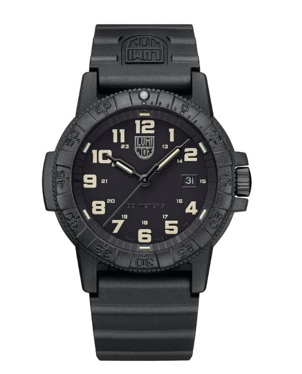 This watch is inspired by one of the ocean’s toughest sea creatures that travels thousands of miles across the Atlantic and Pacific Ocean, the Leatherback Sea Turtle. Just like its namesake this timepiece is tough and durable featuring a 44mm CARBONOX™ case and uni-directional bezel. The sand tone numerals and markers contrast the black dial, watch case and bezel. The classic case design with the protected crown balanced by an opposite outcropping has created the iconic “turtle shape”. The watch is powered by a Swiss Quartz movement and equipped with a SuperLumi-Nova bezel light at 12 o'clock, eight LLTs, and a black waterproof rubber strap ensuring readability and comfort in low light conditions on land or in water up to 100 meters.