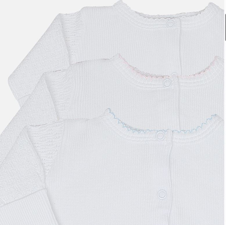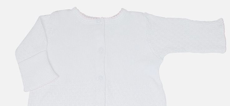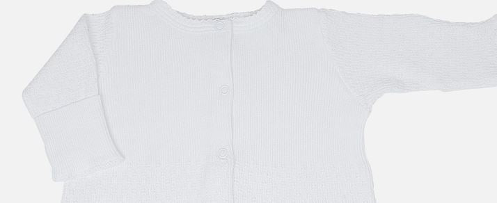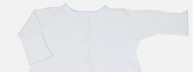 Solid white signature, 50/50 blend, Paty knit accented in colored picot trim.